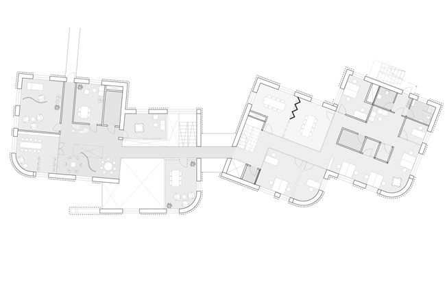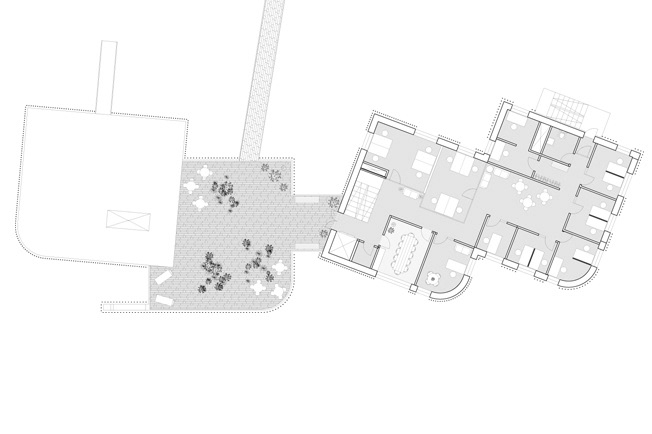 The plan has been organized for the spaces to feel casual, almost carefree, allowing one to feel at ease and almost at home. Considering this is a house for everyone and to meet the many different perceptions of home, the house is organised around daily rituals that we all know from our home: The informal coffee in the kitchen, the dinning situations around the family table, the relaxation in the couch or by the fireplaces. Each ritual got its own intimate recess around the big common space. This blends the felling of privacy with the felling of not being alone and gives a sense of community.